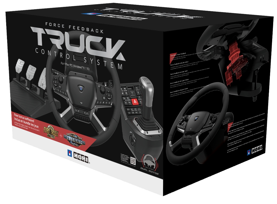 Guida il tuo camion con il Truck Control System con Force Feedback per PC di HORI. Include un volante a grandezza naturale con 40cm di diametro e 1800 gradi di rotazione come nei veri autoarticolati. Il Force Feedback a doppio motore garantisce un realismo senza pari del peso e della sensazione del volante guidando sulle varie strade e superfici.