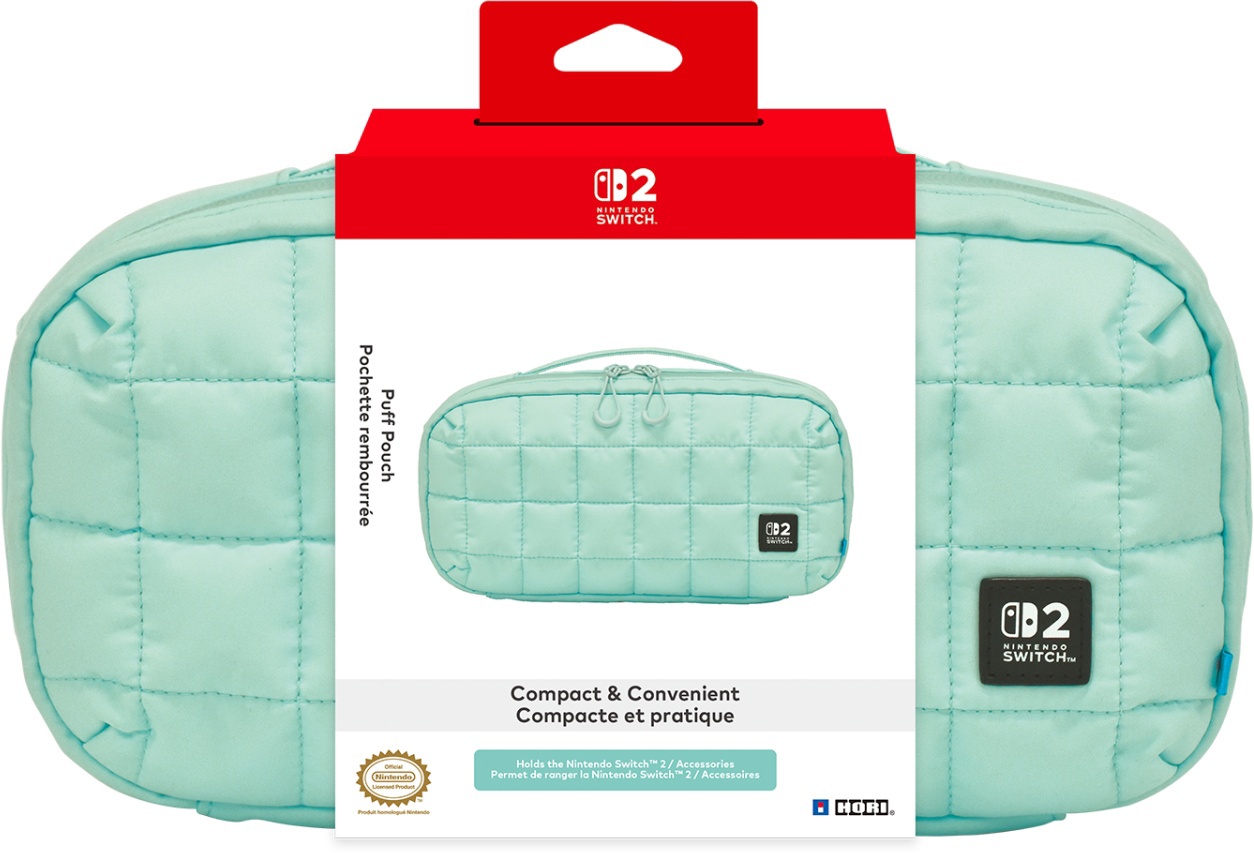 Viaggia con stile e morbidezza con la tua console e i tuoi accessori grazie alla borsa HORI Puff Pouch Verde Cozy per Nintendo Switch 2.