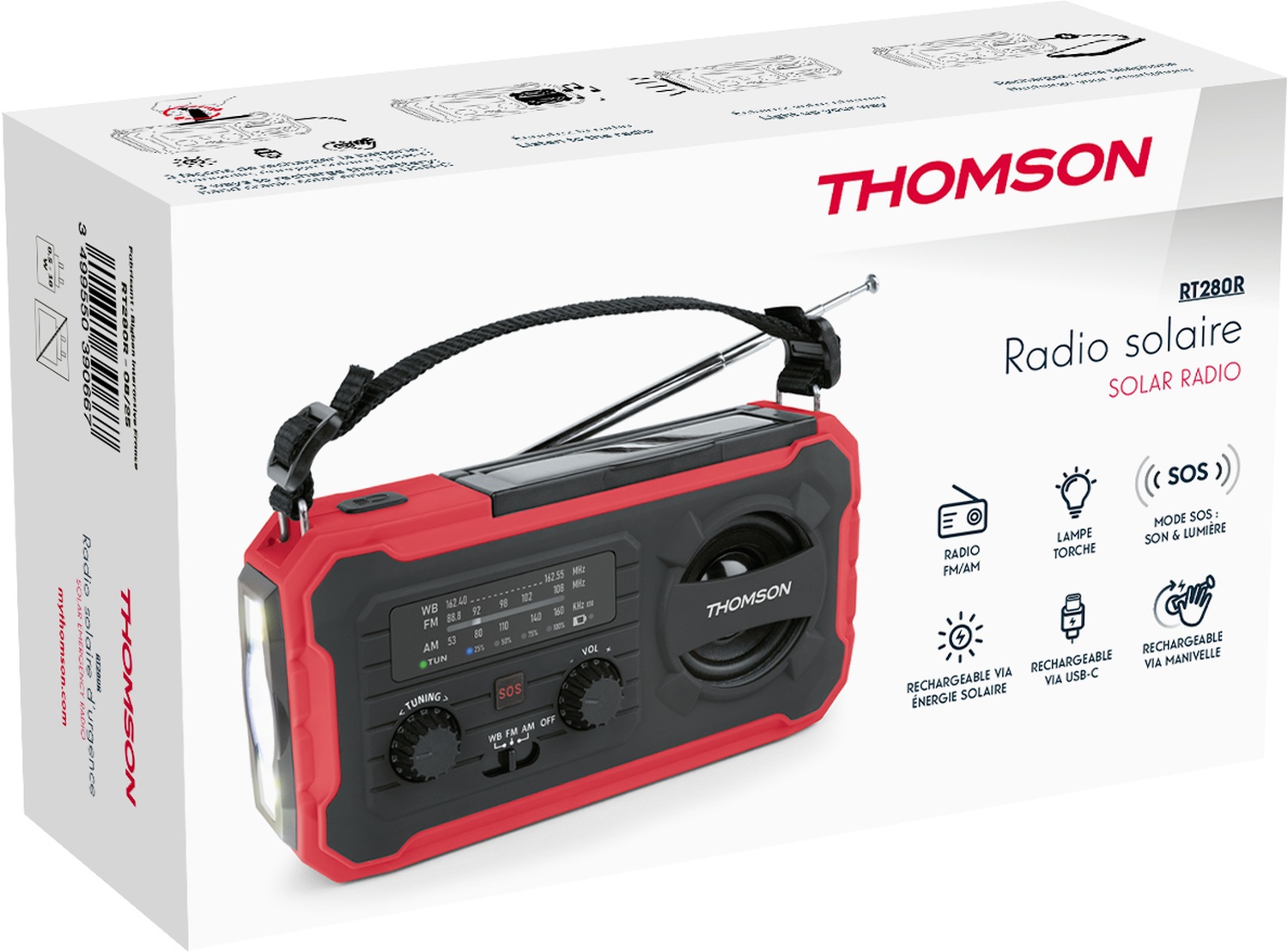 Emergency Radio RT280R [Solar/flashlight/powerbank] - red
