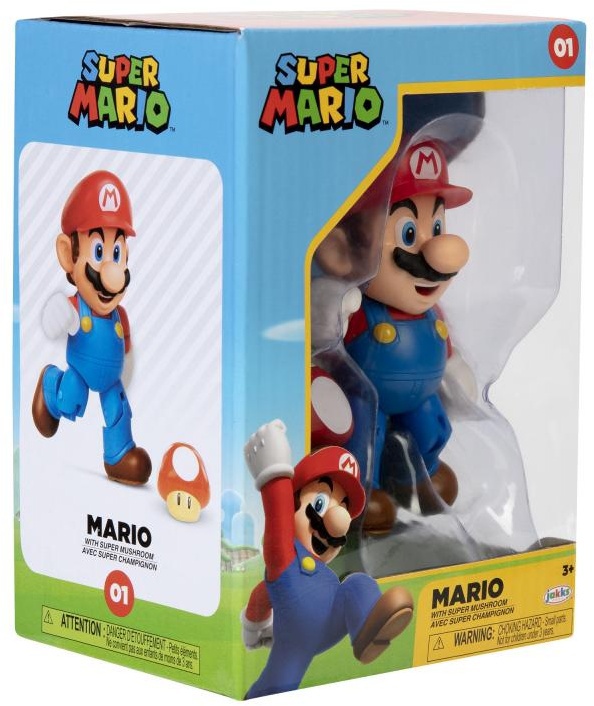 Avec cette boîte de collection, tu reçois, en plus d'un super champignon, la figurine détaillée de Mario d'environ 10 cm. Grâce à ses bras et ses jambes mobiles, la figurine à collectionner te permet de rejouer des scènes authentiques des jeux Super Mario.