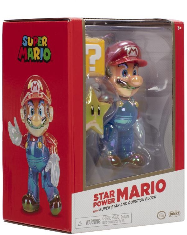 Avec cette boîte de collection, tu reçois en plus de la figurine Star Power Mario d'environ 10 cm, une super étoile et un bloc de points d'interrogation.