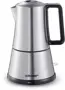Le Moka Maker électrique est en acier inoxydable de haute qualité et présente un design compact qui trouve sa place dans toutes les cuisines. De plus, une lampe de contrôle indique si le Moka Maker est en train de cuire ou s'il a déjà terminé. Après la fin du processus de cuisson, l'appareil s'éteint automatiquement.