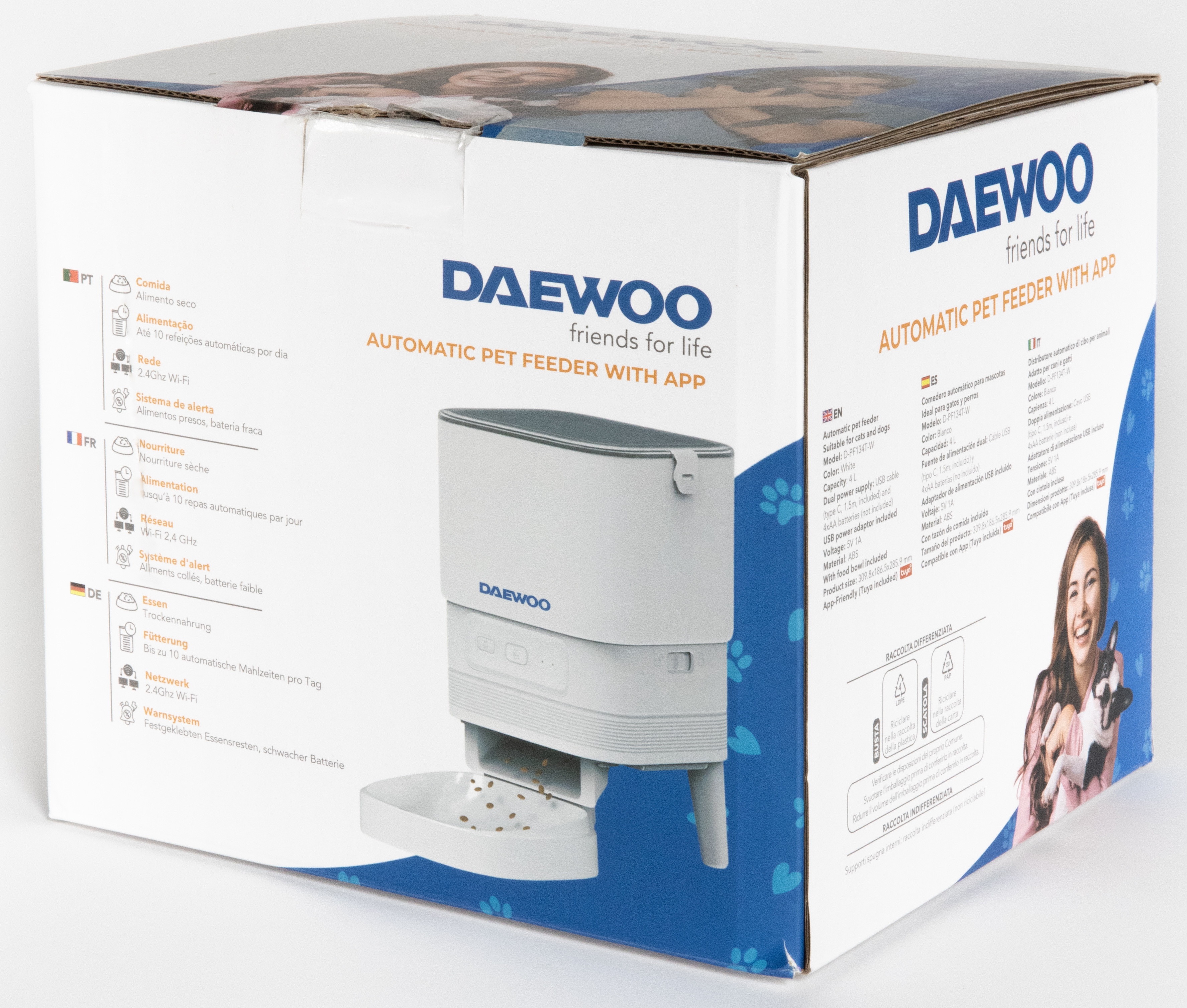 Il Daewoo Automatic Pet Feeder + TUYA App rende la routine quotidiana dell'alimentazione più intelligente, flessibile e affidabile. Con un contenitore per croccantini da 4 litri, porzionatura automatica e controllo completo tramite l'app TUYA, assicura che il tuo animale domestico venga sempre nutrito puntualmente e con la giusta quantità di cibo, anche quando non sei a casa. Ideale per cani e gatti che necessitano di una routine alimentare costante e sana.