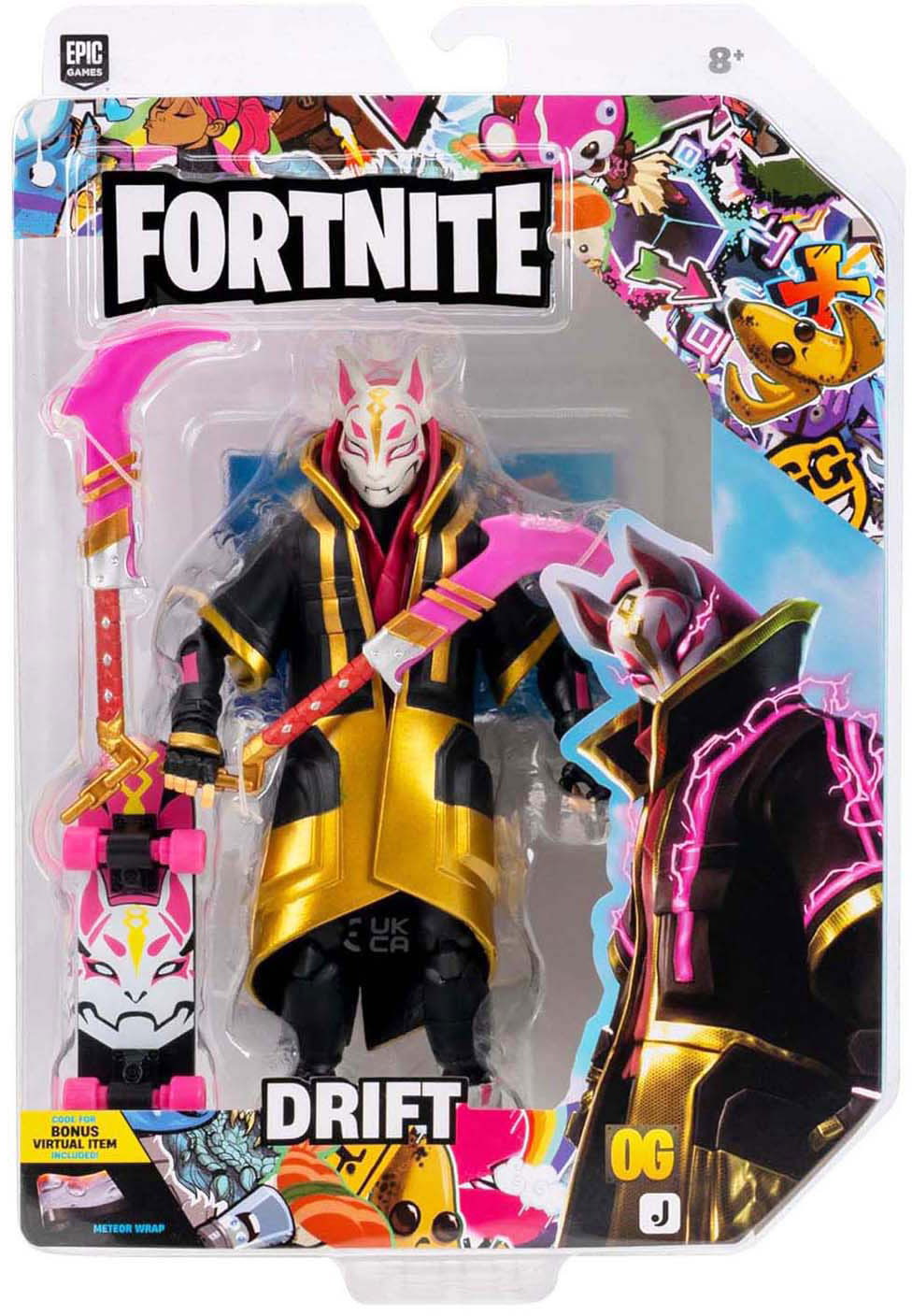 Questa action figure da 15 cm, ricca di dettagli, è ispirata al videogioco Fortnite e dispone di 28 articolazioni mobili per aiutarti a vincere ogni Battle Royale. Include un piccone come strumento di raccolta e un accessorio da schiena (Drift). Inoltre, è incluso un codice per l'oggetto virtuale "Meteor".Sali a bordo, equipaggiati con Legendary Drift e cerca altre action figure Fortnite da 15 cm. Prodotto Fortnite con licenza ufficiale di Jazwares.